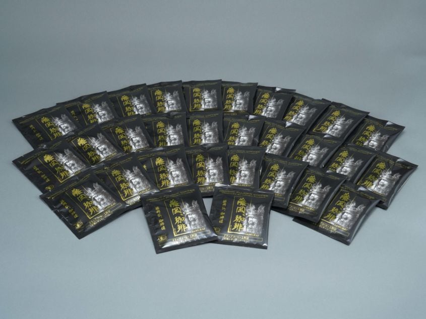 ◆個包装は 本多忠勝のイラストをあしらった黒×金の重厚な“侍デザイン”